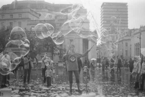 Getting into street photography started with me getting to grips with my film camera. This lead to me eventually approaching randoms, seldom friends, asking if I could take their portraits on the spot. I would call them street portraits but the odd one is in the tube, and in other galleries there's some in the club or whatever so impromptu portraits gets the go ahead!